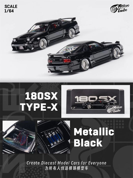 Micro Turbo 1:64 180SX TYPE X limited999 Metallic Black Diecast Model Car
