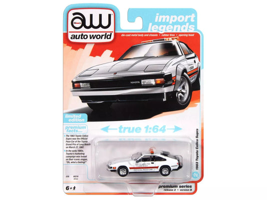 Auto World 1:64 1983 Toyota Celica Supra Toyota Grand Prix of Long Beach Pace Car – White – Premium 2024 Release 2 Version B