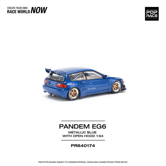 Pop Race 1:64 Pandem Honda Civic EG6 with Open Bonnet Metallic Blue