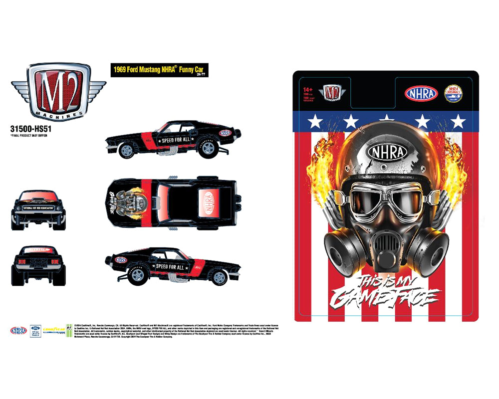 Experience the thrill of drag racing with the M2 Machines 1:64 1969 Ford Mustang NHRA Funny Car! In stunning pearl black, this hobby exclusive car will make a dynamic addition to any collection. Feel the power and precision with every detail of this meticulously crafted model. Only for true racing enthusiasts!