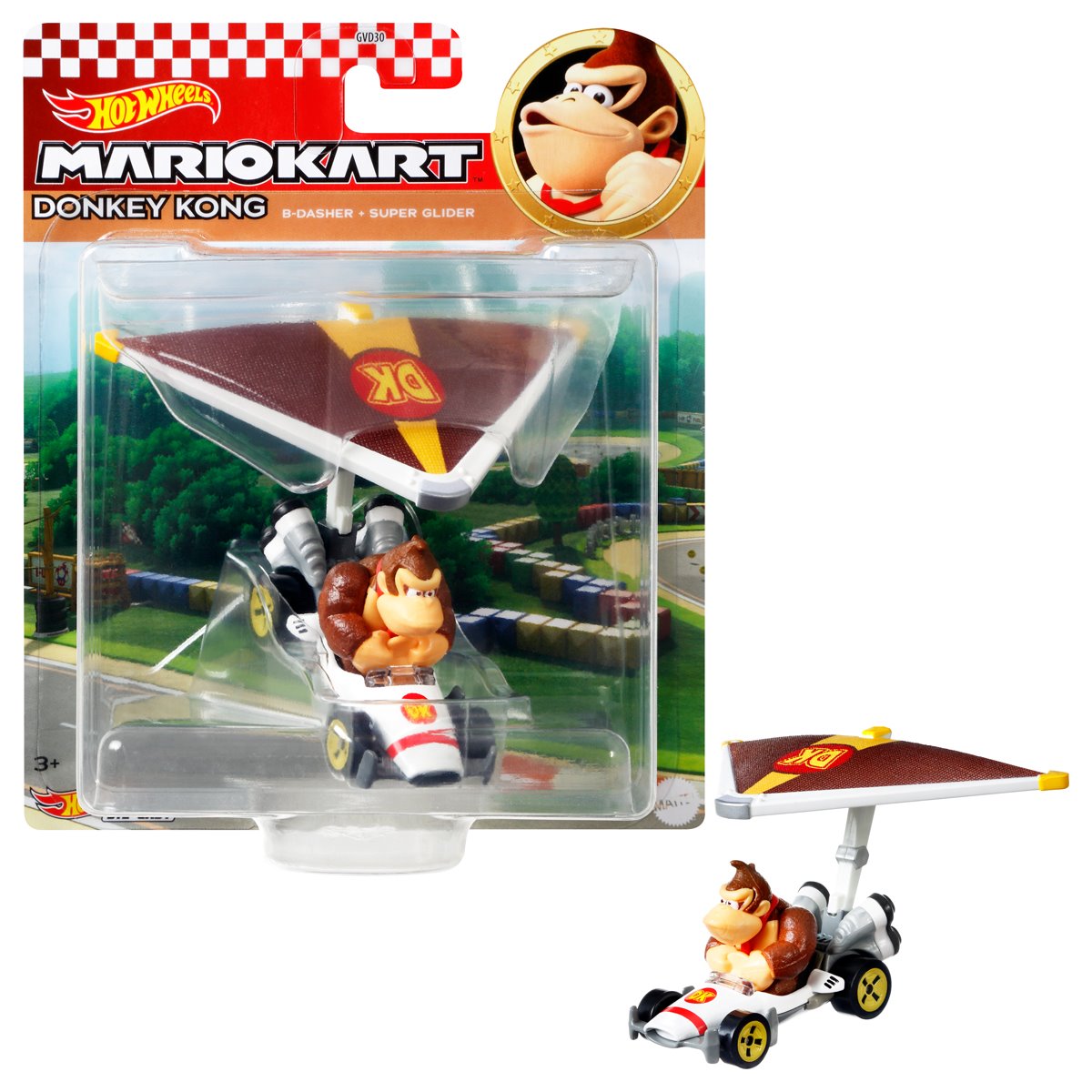 Choose your favorite Mario Kart characters and speed off for racing and stunting madness with a Hot Wheels 1:64 scale die-cast vehicle with a glider attachment just like in the video games! Power-up their imagination when they select their favorite player among the fan-favorite iconic Mario Kart characters. Simply detach the glider attachment to make the vehicle work on Hot Wheels track for the hands-on thrill of Hot Wheels performance and the challenge of in-game Mario Kart action (track sold separately). Ages 3 and up.